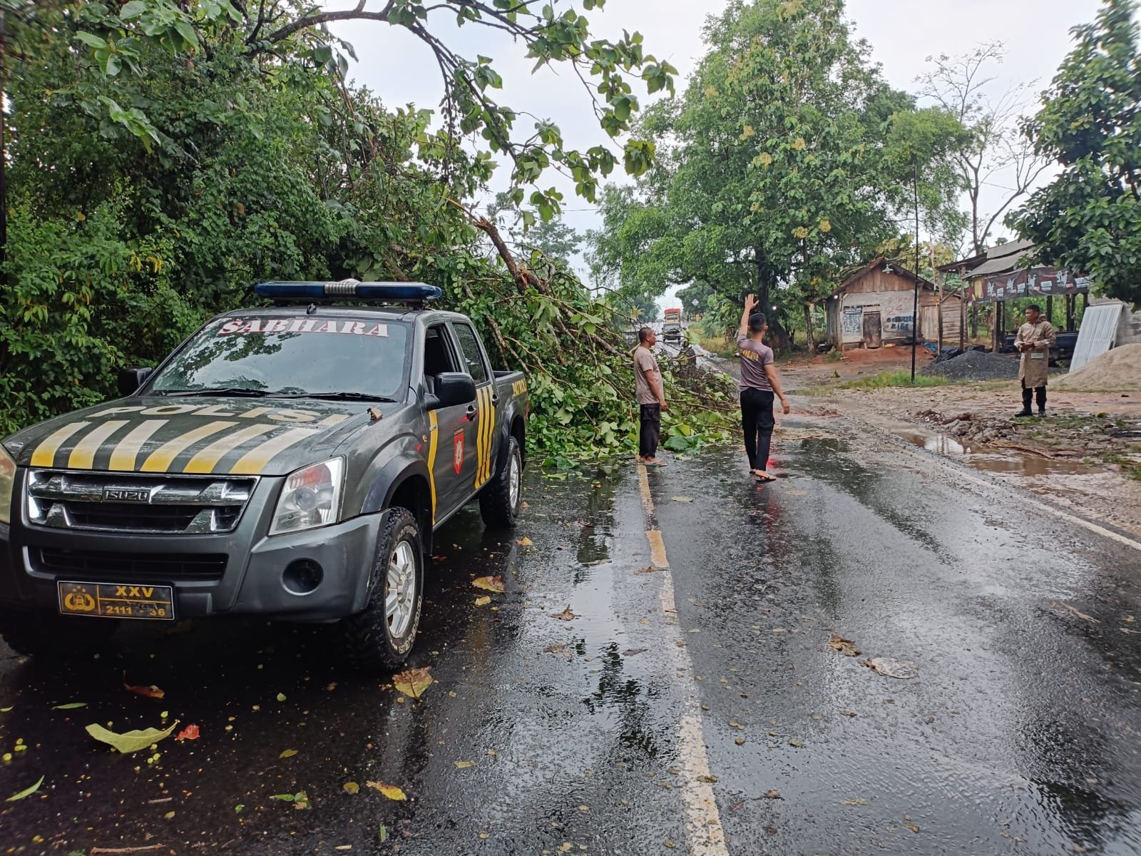 Way kanan,https://Kharismanews info--Diduga hujan lebat disertai angin kencang sebuah pohon Jati tumbang di tengah Jalan…