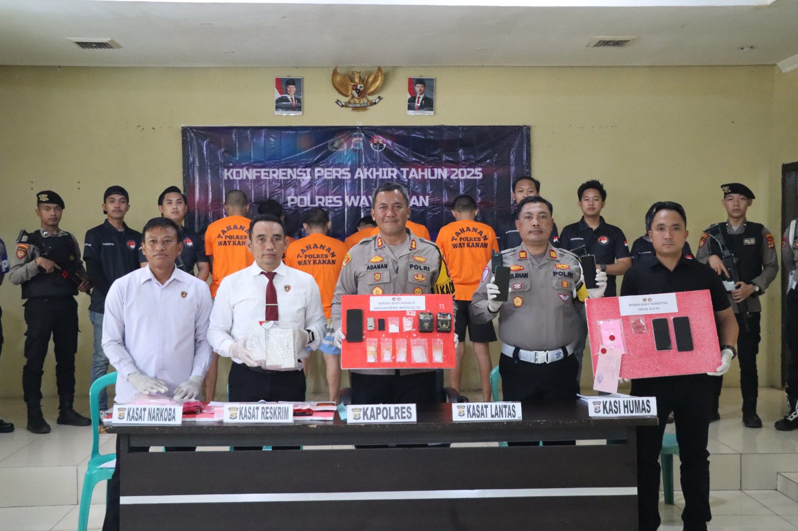 Polres Way Kanan Rilis Akhir Tahun 2025: Kejahatan Narkoba Meningkat 25,42 Persen, Untuk Kriminalitas dan Laka Lantas Turun