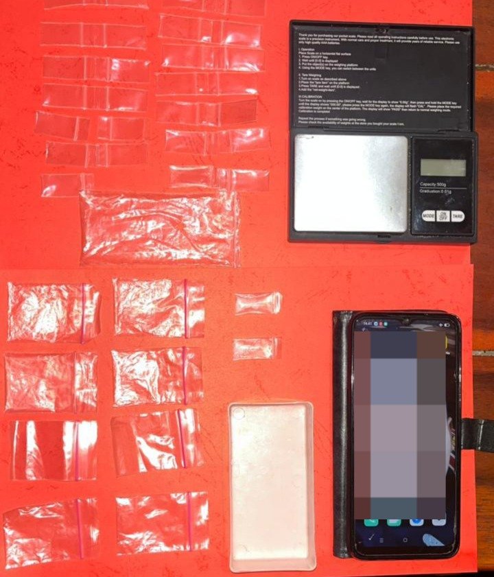 Dalam penindakan petugas juga mengamankan 37 (tiga puluh tujuh) bungkus plastik klip kosong berbagai ukuran, timbangan digital dan Handphone merek OPPO A16 warna Crystal Black.