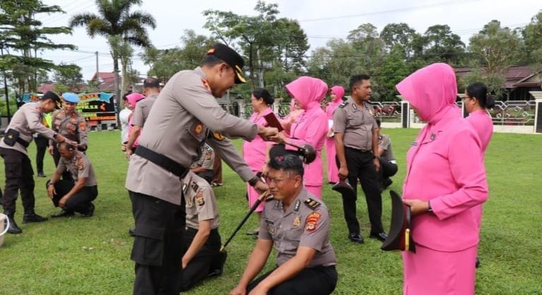 Kapolres Lampung Barat Pimpin Upacara Kenaikan Pangkat 40 Personel