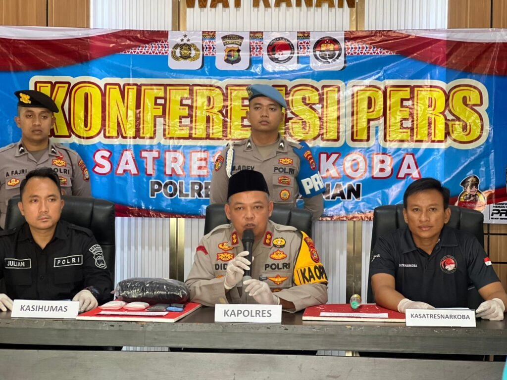 Waykanan,https://kharismanews–Seorang pria berinisial RM (32) warga Bumi Agung Kecamatan Lempuing dibekuk Polres Way Kanan Polda Lampung karena diduga melakukan peredaran gelap narkotika bukan tanaman jenis sabu. Jum’at (6/3/2026).