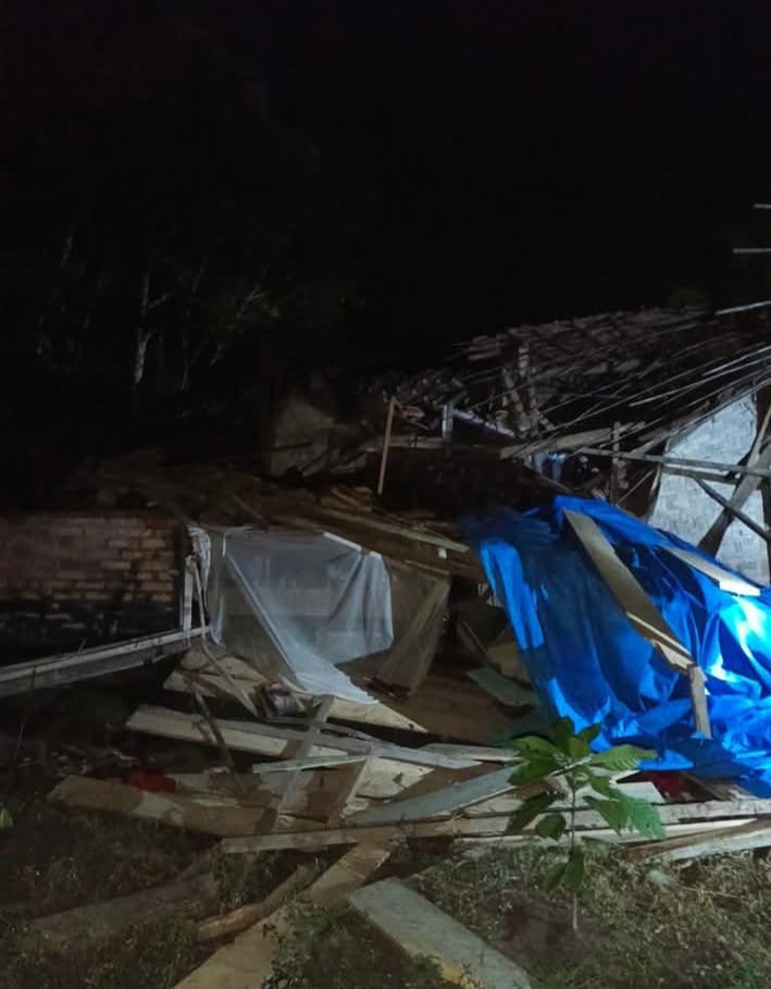 Dijelaskan Kapolsek, kerusakan terjadi di Pekon Sidodadi meliputi rumah milik Jasmini (52) roboh, rumah milik Midah (67) tembok ambruk, rumah milik Sumardi (68) atap asbes ambrol, dan rumah milik Jumono (71) atap asbes rumah ambrol.