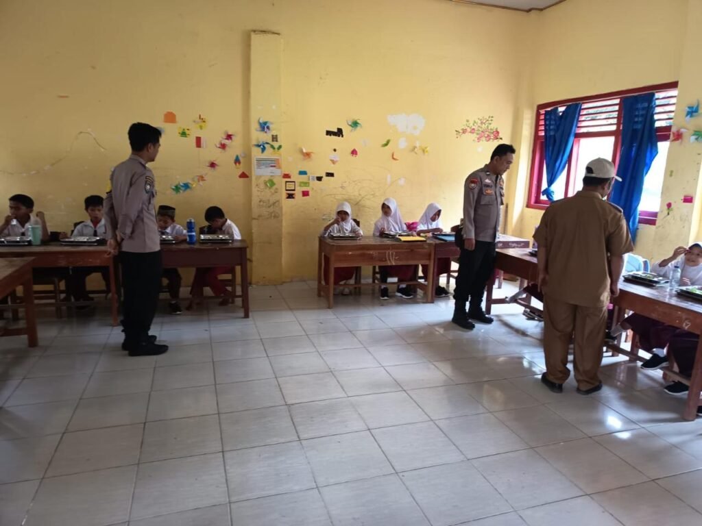 Waykanan,Https://Kharismanews–Kanitbinmas Polsek Banjit melaksanakan monitoring terhadap pelaksanaan Program Makan Bergizi Gratis (MBG) yang disalurkan oleh SPPG Polres Way Kanan Yayasan Kemala Bhayangkara Cabang Way Kanan kepada para pelajar di sejumlah Sekolah di Wilayah Kecamatan Banjit, Way Kanan. Selasa (14/10/2025).