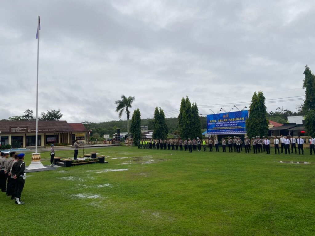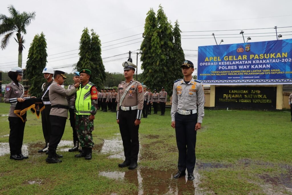 Waykanan,https://Kharismanews–Polres Way Kanan melaksanakan apel gelar pasukan Operasi Keselamatan Krakatau Tahun 2026 dengan tema “Cipta Kondisi Kamseltibcarlantas Menjelang Hari Raya Idul Fitri 1447 H Tahun 2026” di halaman Mapolres Way Kanan. Senin (2/2/2026).