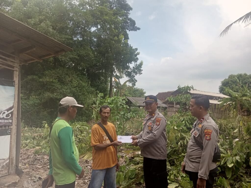 Kapolres Way Kanan AKBP Adanan Mangopang menyampaikan bahwa penyerahan bantuan dilakukan sebagai wujud kepedulian Polri kepada korban yang rumahnya terkena musibah angin puting beliung.