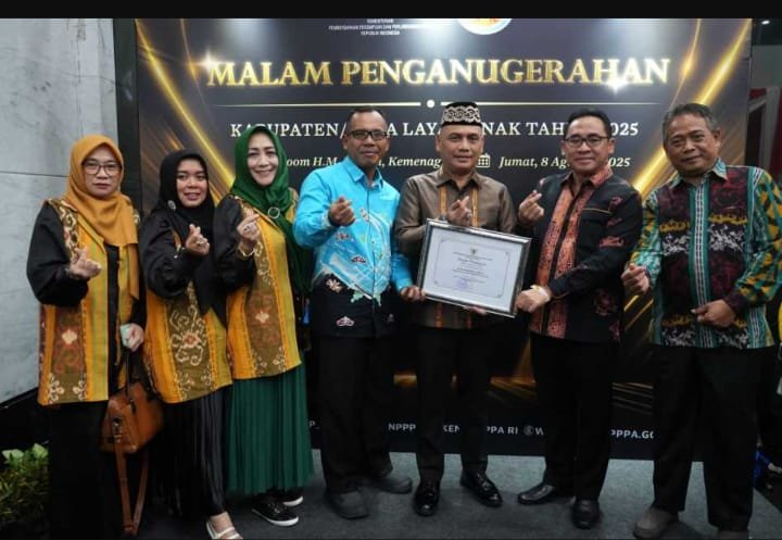 Penghargaan tersebut diserahkan langsung oleh Wakil Menteri PPPA, Veronica Tan, dan diterima oleh sejumlah wali kota dan bupati pada acara Malam Penganugerahan Kabupaten/Kota Layak Anak Tahun 2025 yang berlangsung di Auditorium KH. M. Rasjidi, Kementerian Agama RI, Jalan MH Thamrin No. 6, Jakarta Pusat, Jumat (8/8/2025) malam.
