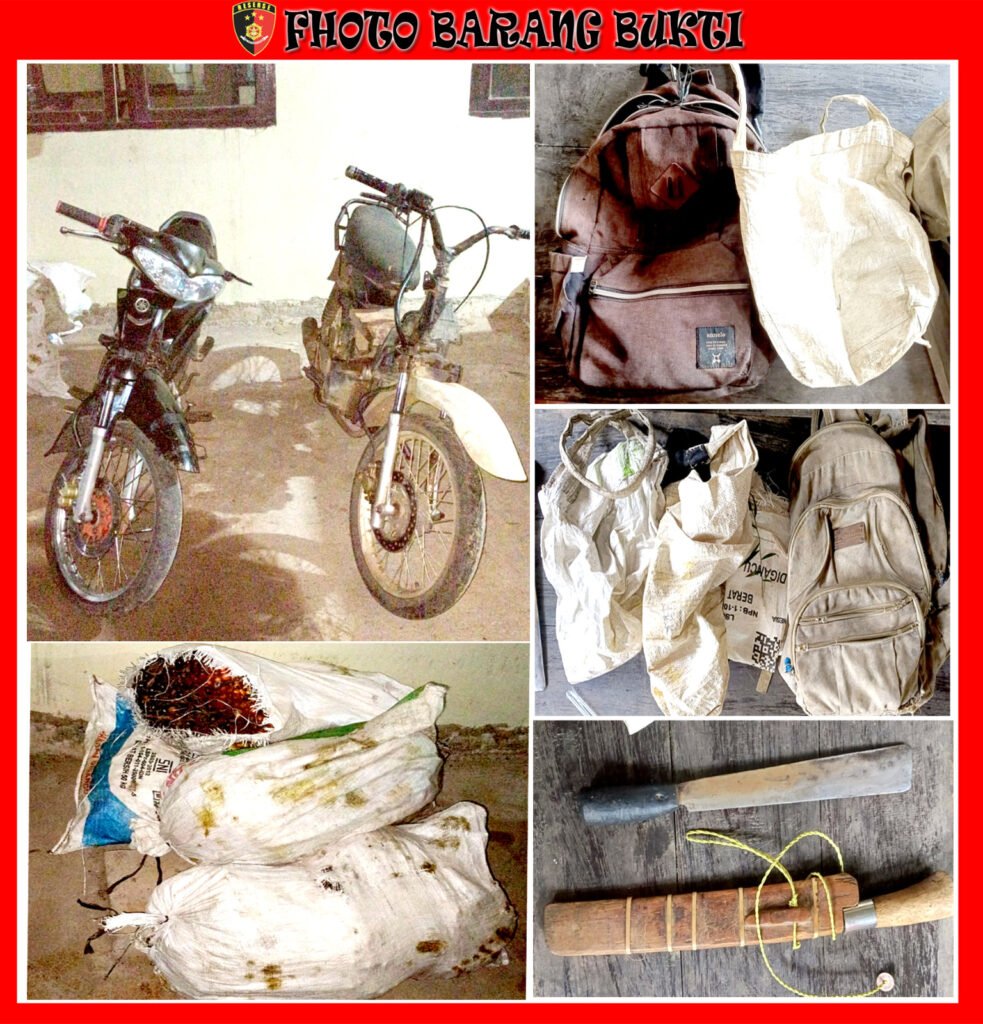 Sementara pada sepeda motor honda supra fit tanpa body yang diduga milik terlapor HS ini membawa karung warna putih yang didalamnya berisikan 6 (enam) tandan buah segar buah sawit.