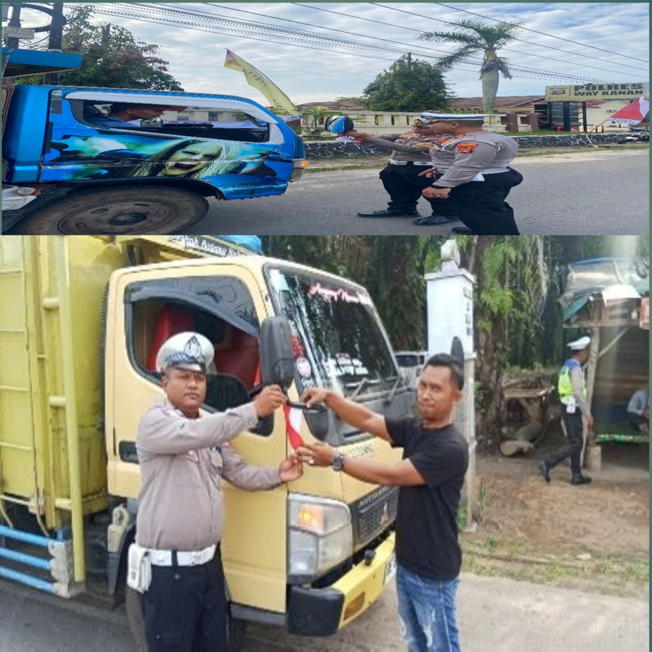 Polantas Menyapa, Polisi Tebar Semangat Nasionalisme Bagikan Bendera Merah Putih di Way Kanan