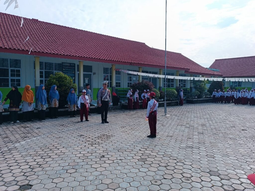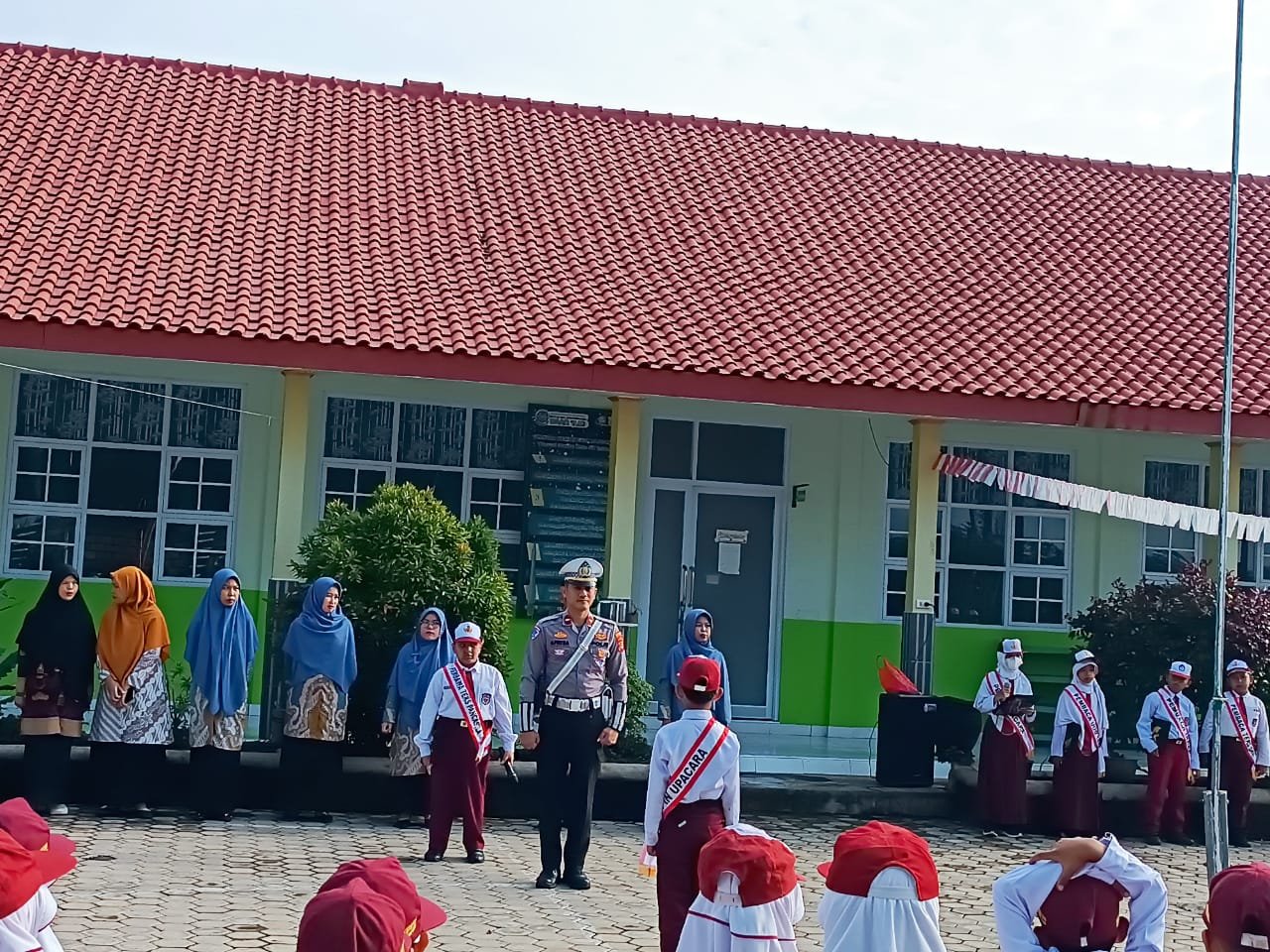Kehadiran Kanitregident Satlantas Polres Way Kanan Ipda Aprisa Putra Akhiriansa bertindak sebagai pembina upacara bersama personel Satlantas Polres Way Kanan disambut baik oleh Kepala Sekolah, dewan guru dan siswa – siswi SD IT Da’ar Ilmi Kampung Negeri Baru Kecamatan Umpu Semenguk Kabupaten Way Kanan.