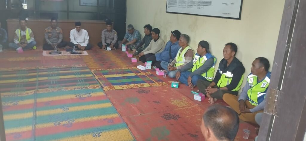 Tampak hadir dalam doa bersama yakni, Kapolsek Baradatu AKP Herwin Afrianto, Ust. Tosiran, Ketua persatuan Ojek Baradatu Tambrin, personel Polsek Baradatu, tomas, toga, pengemudi ojek dan Mahasiswa Institut Al – Ma’arif Way Kanan.
