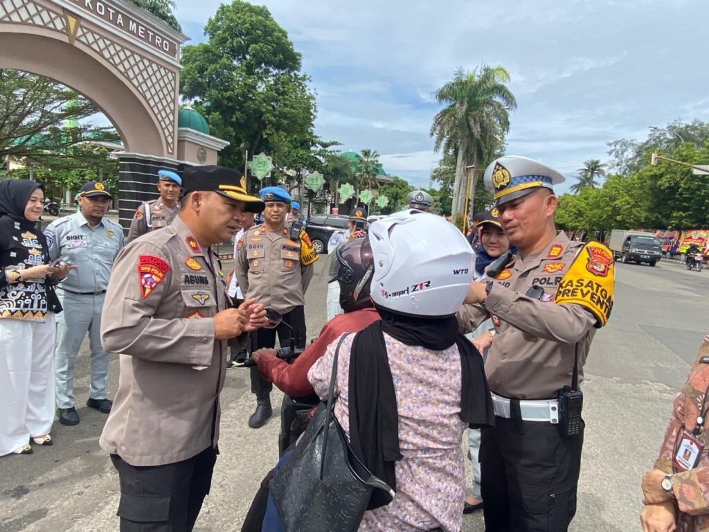 Metro,https://Kharismanews–Polres Metro menggelar Operasi Zebra Krakatau 2025 di kawasan Traffic Light (TL) Masjid Taqwa Kota Metro, Jumat pagi. Kegiatan ini tidak hanya berfokus pada disiplin berlalu lintas, tetapi juga mengedepankan pendekatan humanis melalui pembagian paket sembako beras, helm, pamflet, dan stiker keselamatan bagi para pengendara yang melintas.