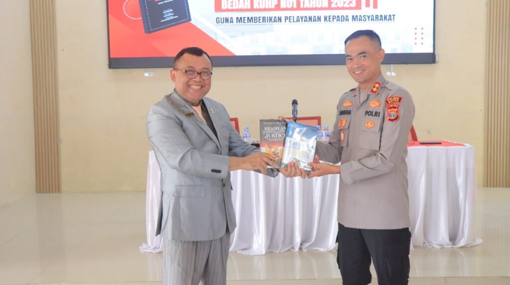 KOTA METRO,https://Lharismanews –The Living Law atau hukum yang hidup di masyarakat atau local wisdom sebagaimana di atur didalam ketentuan Pasal 2 ayat (1) UU No Tahun 2023 Tentang KUHP Nasional tidak serta merta dapat diberlakukan atau dilaksanakan tangal 2 Januari 2026 , sebelum adanya Peraturan Pemerintah (PP) yang dijadikan dasar pembentukan peraturan daerah (Perda) untuk mengatur mengenai keberlakuan hukum adat ditiap daerah masing masing. Hukum adat berlaku ditempat hukum itu hidup sepanjang tidak diatur didalam KUHP Nasional, sesuai dengan nilai nilai yang terkandung didalam Pancasila dan UUD 1945, HAM, asas asas umum yang diakui masyarakat bangsa bangsa. Hal itu di sampaikan Asst. Prof. Dr. Edi Ribut Harwanto, S.H.,M.H., C.LAd, C.LC., C.CM., C.MT Master Trainer Badan Nasional Sertifikasi Profesi (BNSP) Pelatihan Peningkatan Kemampuan Kepada Personil Polres Metro dan Jajaran Dalam Rangka Bedah UU No 1 Tahun 2023 Tentang KUHP. Guna Memberikan Pelayanan Kepada Masyarakat, Selasa (9/12/2025) pagi.