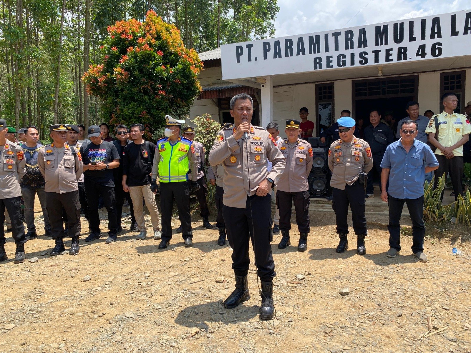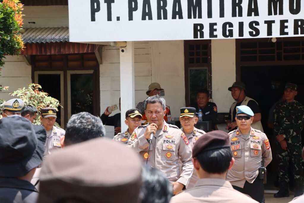 Polres Way Kanan Polda Lampung melaksanakan aksi pengamanan unjuk rasa oleh masyarakat gabungan 16 Kampung Kecamatan Sungkai Utara dan Sungkai Tengah Kabupaten Lampung Utara yang berlangsung di PT. PML (Paramita Mulia Langgeng) Daftar 46 Way Hanakau Kecamatan Pakuan Ratu, Way Kanan. Rabu (10/09/2025).