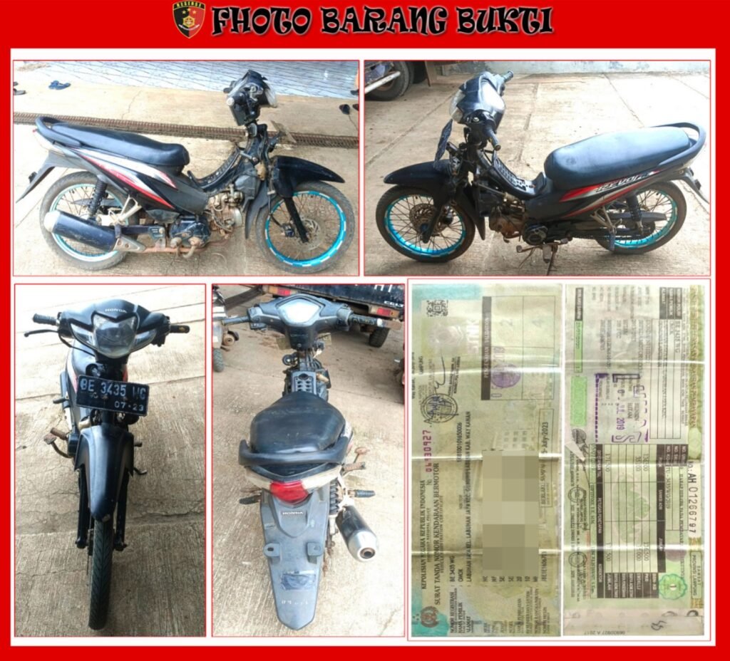 Kini Terduga pelaku dan barang bukti sepeda motor Honda Revo Fit Warna Hitam dengan Nomor Polisi: BE 3435 WY dan STNK sepeda motor korban dibawa dan diamankan ke Polsek Gunung Labuhan guna dilakukan pemeriksaan lebih lanjut.