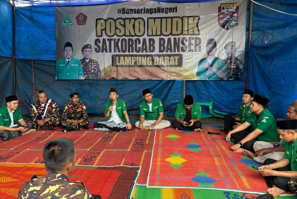 KABUPATEN LAMPUNG BARAT, 15 Maret 2026 – Pimpinan Cabang GP Ansor melaksanakan pendirian posko mudik tahun 2026 diawali dengan doa bersama dan pemasangan bendera tanda dimulainya kegiatan tersebut. Kegiatan jaga Posko mudik akan beroperasi mulai H-7 hingga H+7 Hari Raya Idul Fitri 1447 H. Posko yang berlokasi di area jalan lintas Sumberja – Liwa tepatnya dipekon Padang Tambak Kecamatan Way Tenong ini bertujuan untuk memberikan kemudahan dan dukungan bagi masyarakat yang melakukan perjalanan mudik.