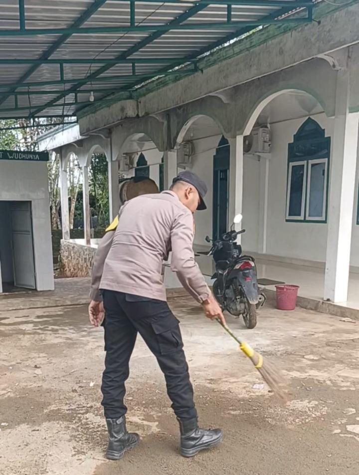 Bukan sekedar bersih bersih, personel Polsek Kasui bahu-membahu bersama masyarakat dalam perbaikan sarana fisik, termasuk mengecat pagar masjid agar terlihat lebih bersih, rapi, dan cantik.