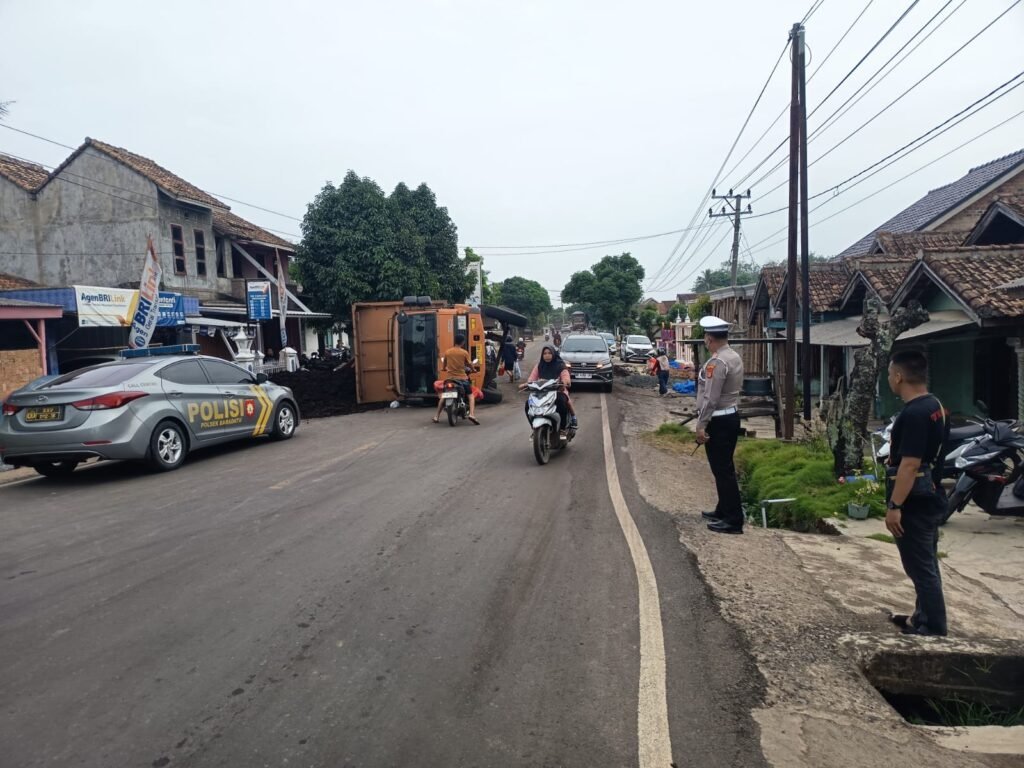 Satlantas Polres Way Kanan Bergerak Cepat Menangani Laka Tunggal Truk Tronton di Jalinsum Gunung Katun