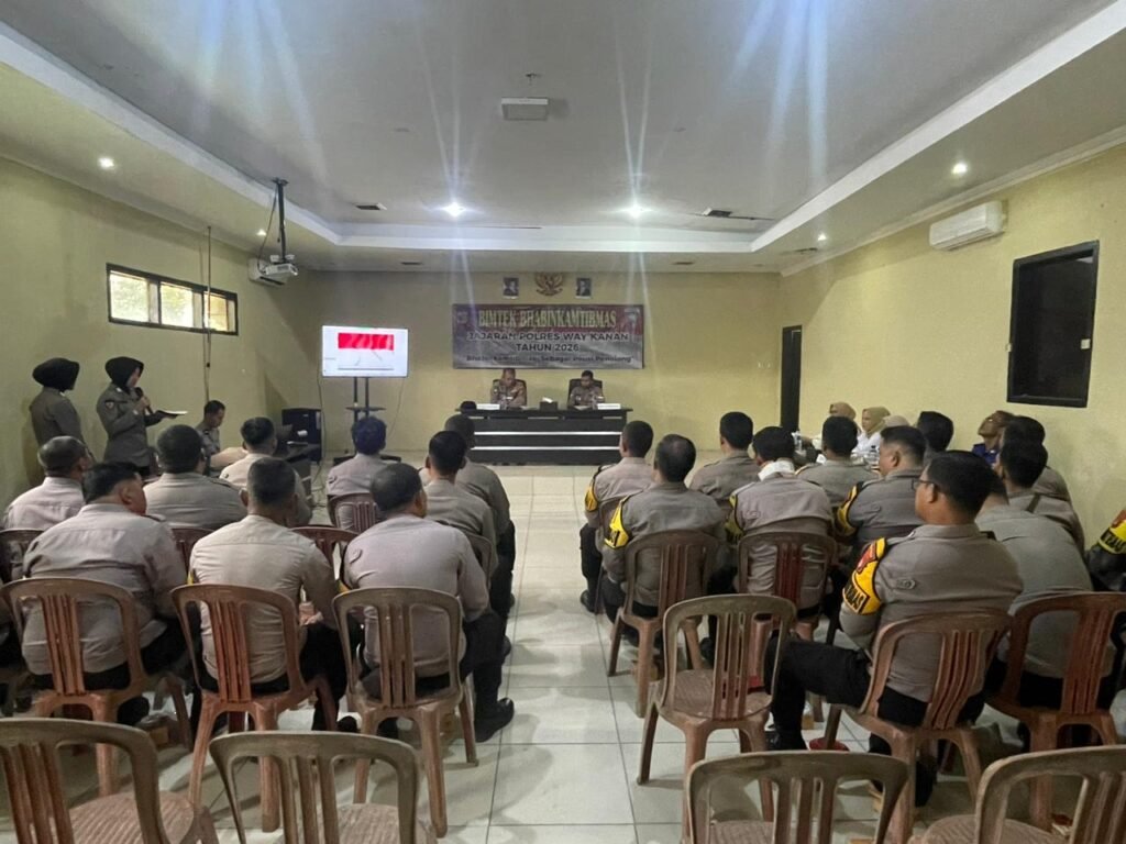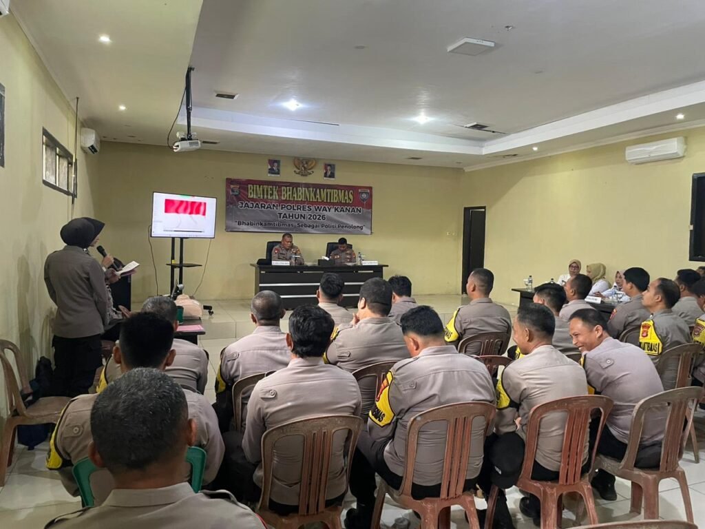 Waykanan,https://Kharismanews–Dalam meningkatkan kemampuan personel, khususnya Bhabinkamtibmas, Satbinmas Polres Way Kanan menggelar kegiatan pembinaan dan peningkatan kemampuan (Binkatpuan) yang berlangsung di Aula Adhi Pradhana Polres Way Kanan. Kamis (19/02/2026)