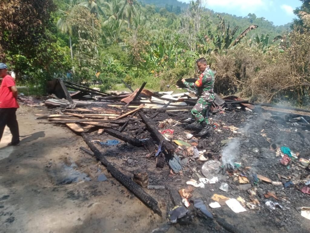 Sigap Anggota Koramil 424 -02/ Wonosobo Bantu Padamkan Rumah Warga Pekon Sukajaya Akibat Konselting Arus Listrik