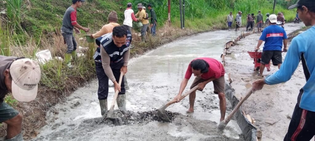 Salah satunya Bhabinkamtibmas Kampung Bali Sadhar Tengah Brigpol I Gede Eka P bersama Aparatur Kampung dan masyarakat sekitar melaksanakan kegiatan gotong royong pengecoran jalan poros bertempat di Kampung Bali Sadhar Tengah Kecamatan Banjit Kabupaten Way Kanan