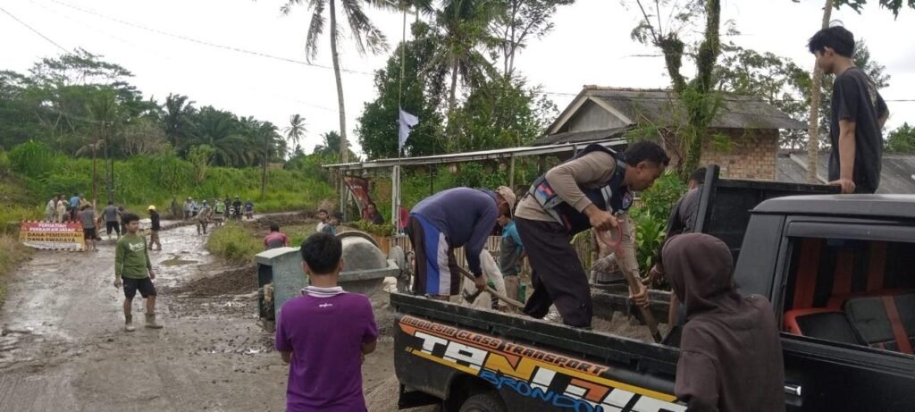 Sementara itu, kegiatan gotong royong membantu warga dalam memperbaiki jalan poros Kampung Karya Maju – Kampung Air Ringkih Kecamatan Rebang Tangkas Kabupaten Way Kanan juga dilakukan oleh Kapolsek Rebang Tangkas Iptu Boby bersama personel