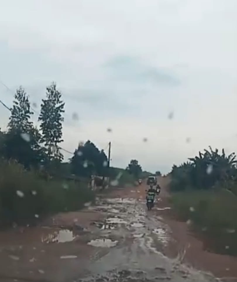 Pantauan di lapangan menunjukkan, badan jalan dipenuhi lubang besar, genangan air, serta permukaan tanah yang licin dan berlumpur, terutama saat musim hujan.